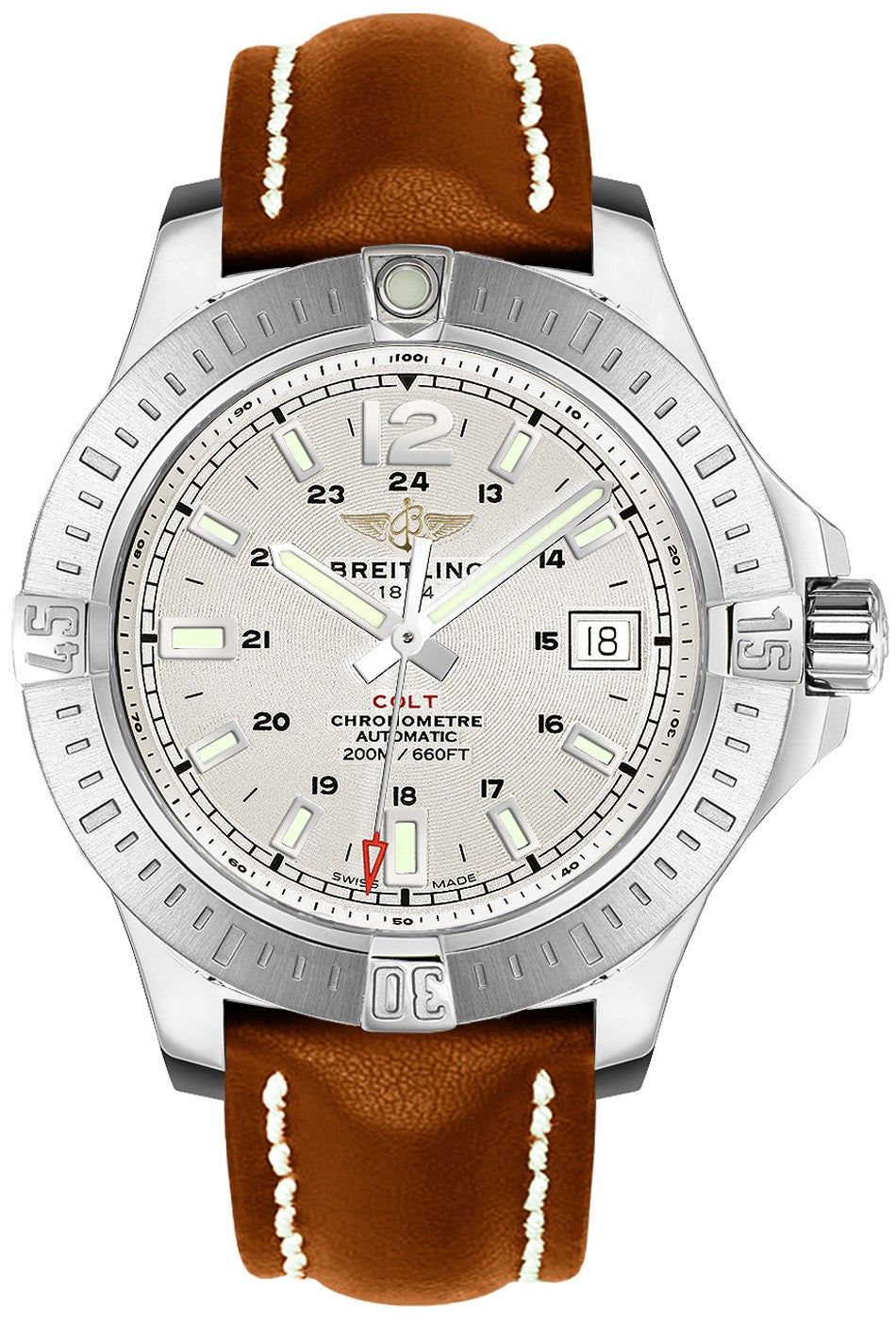 Expertly crafted for the modern man, the Breitling Colt Automatic Men's Silver Dial Watch boasts a sleek silver dial and precision automatic movement. Its durable design and sophisticated look make it a timeless addition to any collection. Trust in Breitling's renowned expertise with this exquisite timepiece.