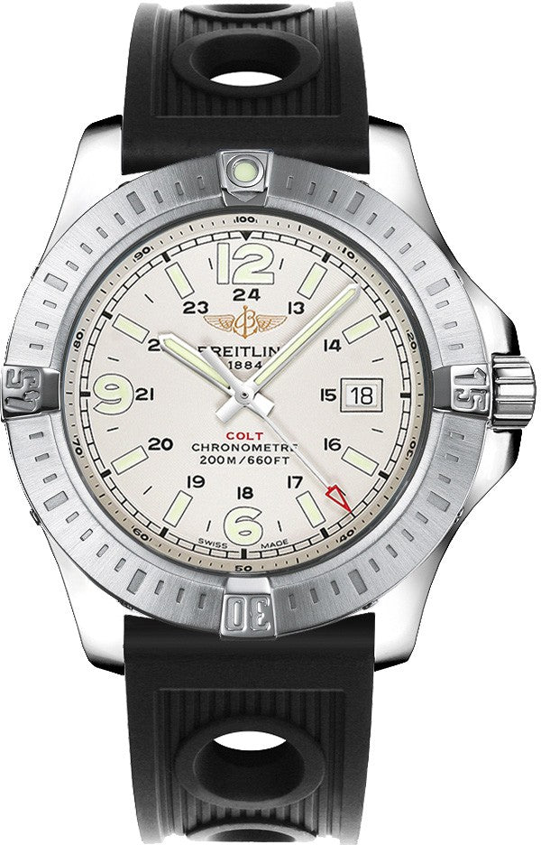 Experience a timepiece that exemplifies precision and style with the Breitling Colt Quartz 44 Stratus Silver Dial Men's Watch. With a sleek silver dial and durable quartz movement, this watch delivers accuracy and reliability. Elevate your look and stay on schedule with this expertly crafted timepiece.