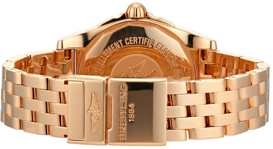 Discover the latest Breitling Galactic 29mm Women's Quartz watch H7234812/A791/791H, now available at a discounted price. Crafted in Switzerland, this watch features a sturdy 18K rose gold case, push-pull crown, and matching bracelet. The luminous Mother of Pearl dial, date display, and scratch-resistant sapphire crystal, all surrounded by a polished 18K rose gold bezel, make this sophisticated timepiece powered by the dependable Breitling Calibre 72 quartz movement. And with free Lifetime battery replacement, you can enjoy hassle-free maintenance.