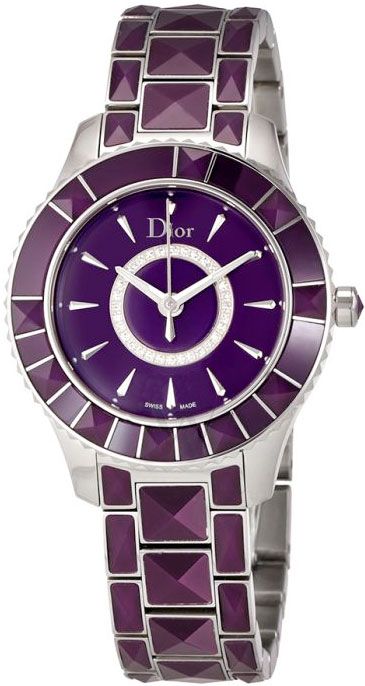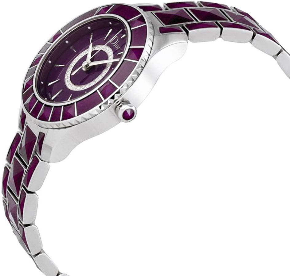 Discover the elegance and sophistication of the Christian Dior Christal Purple & Diamond Dial Women's Fashion Watch CD143112M001. Expertly crafted with a stainless steel case and bracelet, this watch boasts a luxurious purple sapphire crystal and unidirectional rotating bezel. The stunning purple dial, accented by index hour markers, luminescent hands, and a central diamond ring, is powered by a precise battery operated quartz movement. Protected by a scratch resistant anti-reflective sapphire crystal, the round 33mm case is both durable and stylish. With a push and pull crown and stainless steel deployment buckle, this Swiss made watch is water resistant up to 50 meters / 165 feet. Elevate your fashion game with this must-have timepiece.