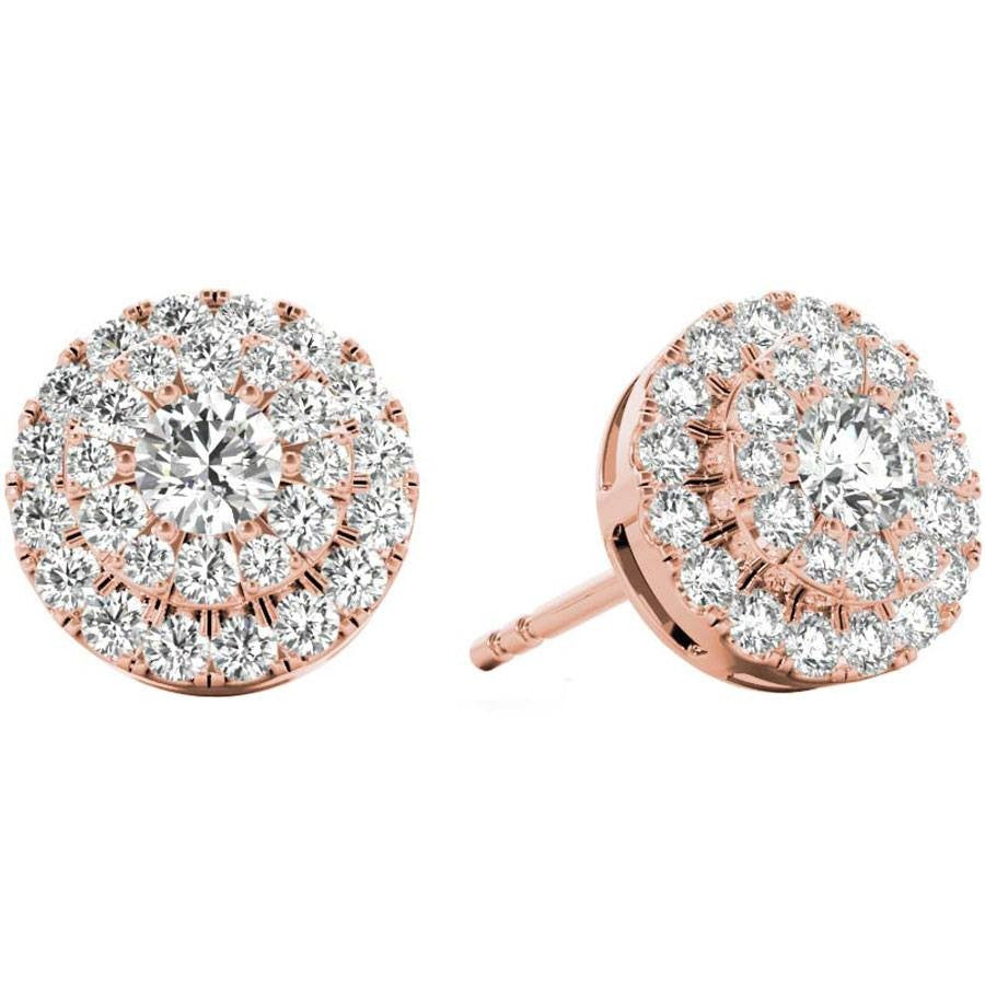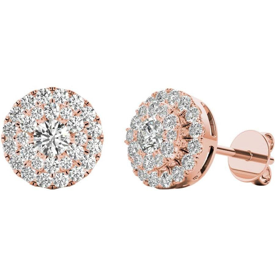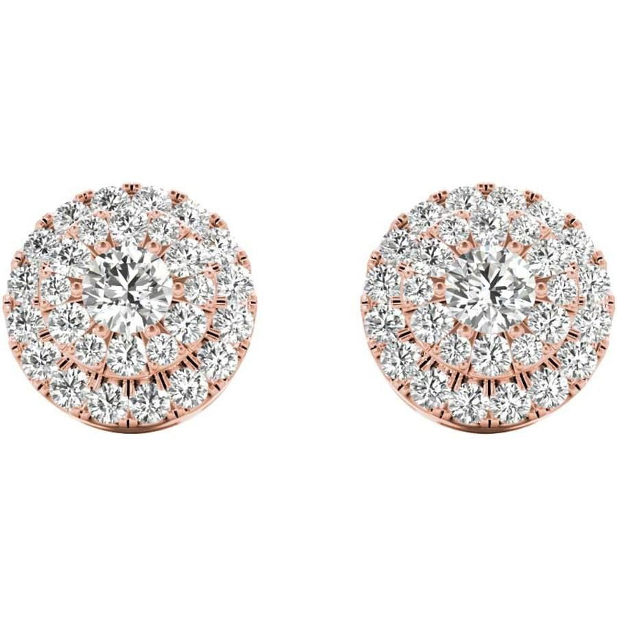 NEW SOLID 18K ROSE GOLD DIAMOND PAVE HALO WOMEN'S EARRINGS FOR SALE