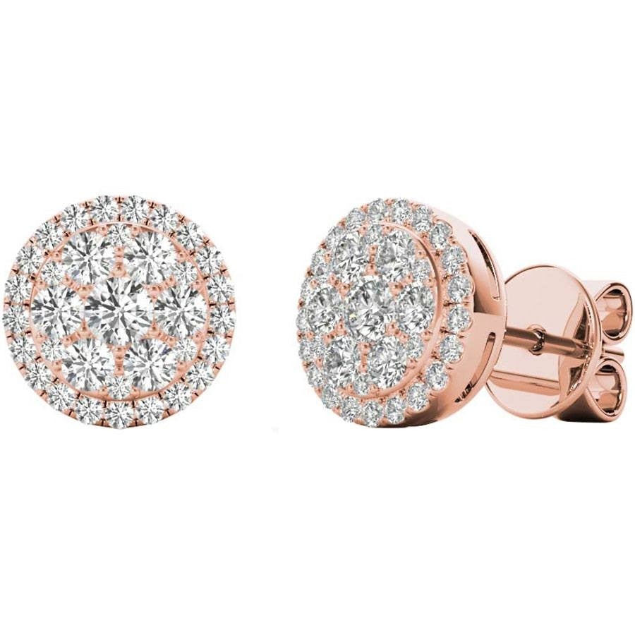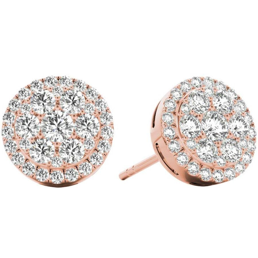 NEW 18K ROSE GOLD DIAMOND HALO PAVE WOMEN'S EARRINGS FOR SALE