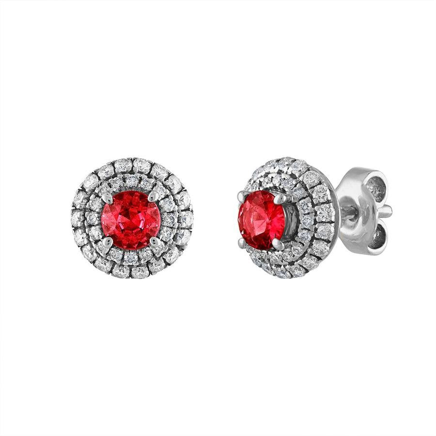 New Solid 18k White Gold Diamond Ruby Women's Earrings for Sale