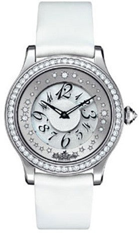 The Jaeger-LeCoultre Master Twinkling Diamonds Q12034S2 is a captivating women's timepiece that masterfully combines luminous elegance with technical excellence. Presented in a solid 18K white gold case, this watch is adorned with delicate diamonds set around the bezel, offering a refined sparkling detail. Its silver-and-white dial glows subtly beneath a scratch-resistant sapphire crystal, enhancing legibility and luxury. Powered by a self-winding automatic movement, the watch delivers precision and performance. A white satin strap with a deployment buckle adds both comfort and sophistication to its design. Beyond its aesthetics, the timepiece includes a three-year warranty, original box, and manual.