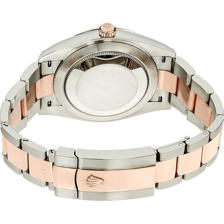 The Rolex Datejust 41 Sundust Everose Rolesor Men's Watch 126301-0009 features a sundust dial and a blend of 904L-grade Oystersteel and 18 karat rose gold in its desirable Everose Rolesor finish. The accompanying polished solid 18k Everose gold and brushed 904L Oystersteel stainless steel oyster bracelet boasts a folding oysterclasp deployment buckle with Easylink 5mm comfort extension link. This impressive watch is powered by a selfwinding automatic movement with a 70 hour power reserve.