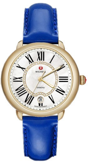 Experience timeless elegance with the Michele Serein 16 MWW21B000022 watch. This striking timepiece features a sleek blue leather strap and a diamond-encrusted bezel, adding a touch of luxury to any outfit. With its precise quartz movement and water resistance up to 50 meters, this watch offers both style and functionality. Elevate your look with the Michele Serein 16 MWW21B000022. aka 21B22