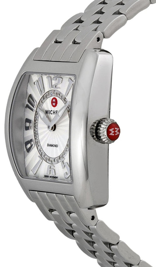 The Michele Urban Mini Diamond Women's Watch MWW02A000585 boasts a luxurious and elegant design, perfect for the modern woman. With its stunning diamond accents and precise quartz movement, it exudes sophistication and style. Elevate any ensemble with this timepiece that combines fashion and function seamlessly. aka 2A585