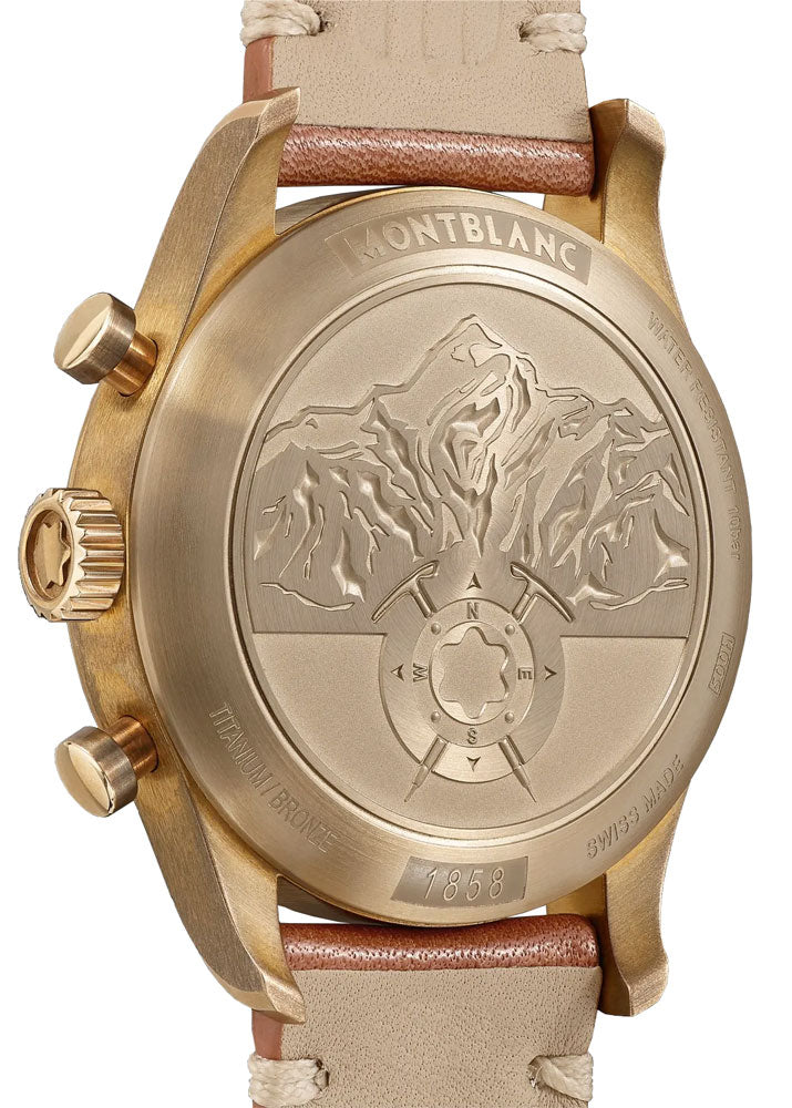 Bronze-coated Titanium Case Back with Compass & MontBlanc Mountain Engraving