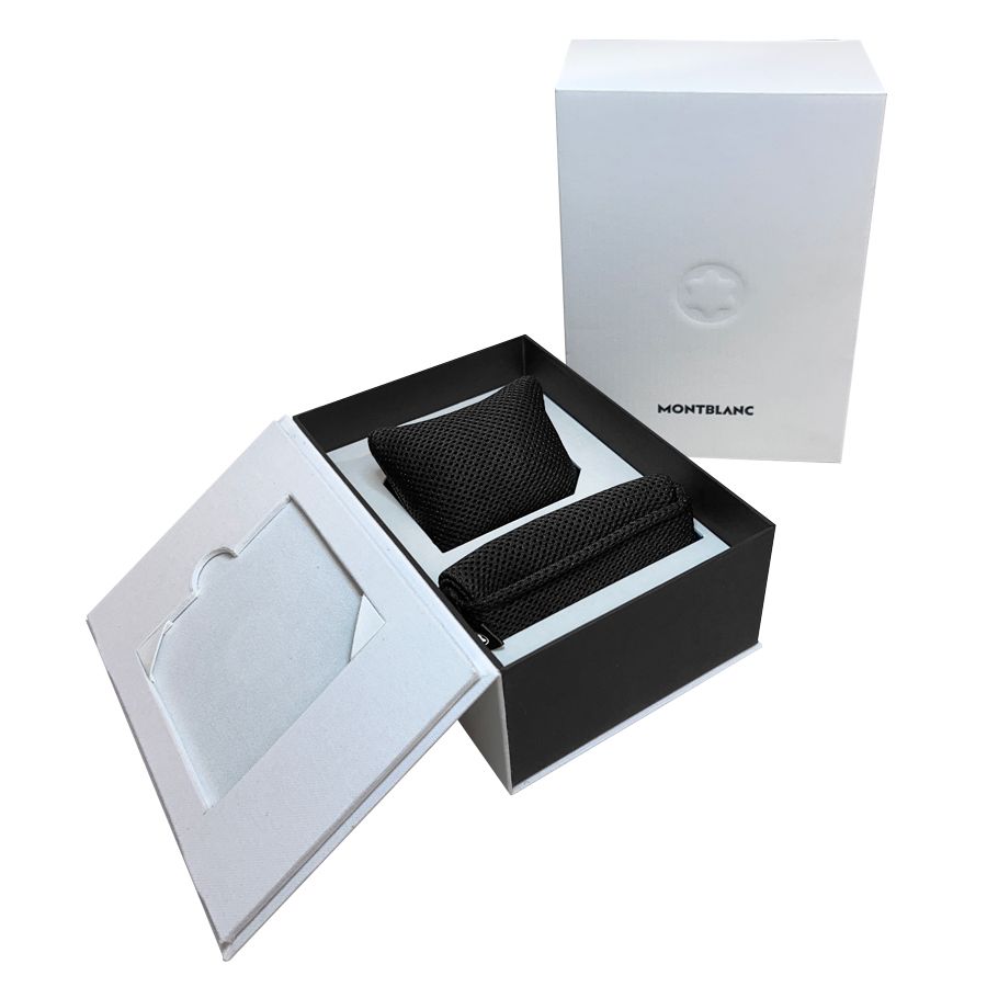 MontBlanc 1858 129616 men's watch. Features a brushed stainless steel case and brushed with polished stainless steel bracelet. Blue dial with luminescent hands and index & Arabic numeral hour markers. Powered by the MontBlanc Caliber MB 24.33 self-winding movement which boasts a 50 hour power reserve and contains 25 jewels. A scratch resistant sapphire crystal protects the dial. The case is round and 42mm in diameter. Inlet size: 21mm. Solid case back. Push & pull crown. Stainless steel deployment buckle. Water resistant 100 meters / 330 feet. Luxury watch style. Swiss made.