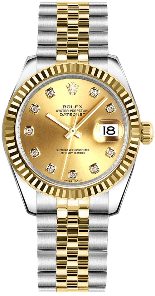 Rolex Datejust 31 Champagne Diamond Dial Watch 178273-0002