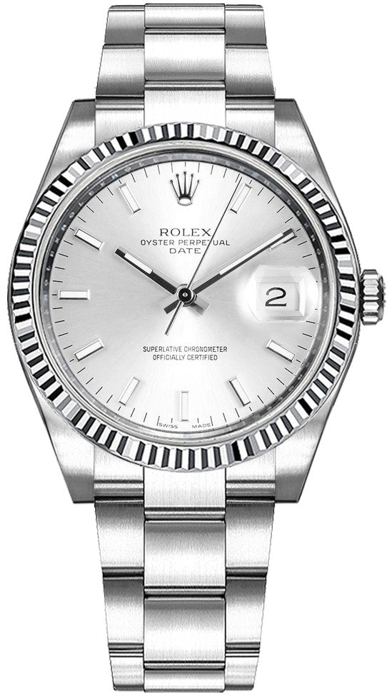 Rolex Oyster Perpetual Date 34 Silver Dial Watch 115234-0005