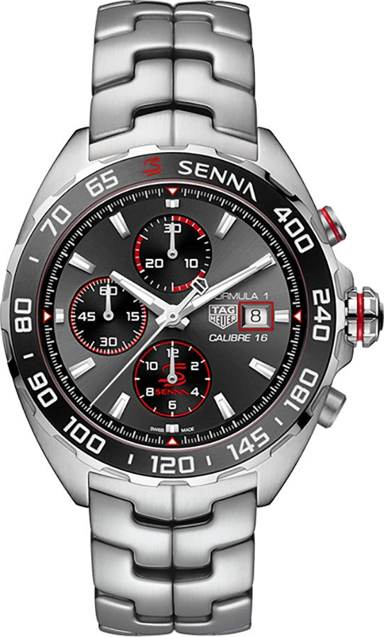 The Tag Heuer Formula 1 Senna Special Edition Men's Watch CAZ201D.BA0633 offers a unique blend of luxury, style, and performance. Its elegant grey dial is adorned with index hour markers and features a date display and chronograph subdials for added functionality. The 44mm watch also includes a stainless steel case with a black ceramic bezel and tachymeter scale, providing both durability and a sleek look. It is powered by an automatic movement, ensuring accurate timekeeping. With a steel bracelet and deployment buckle closure, this timepiece is perfect for any occasion and will surely become the centerpiece of your collection.