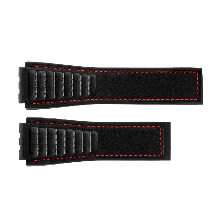 7" Adjustable Black Rubber Strap with Black Leather & Red Stitching