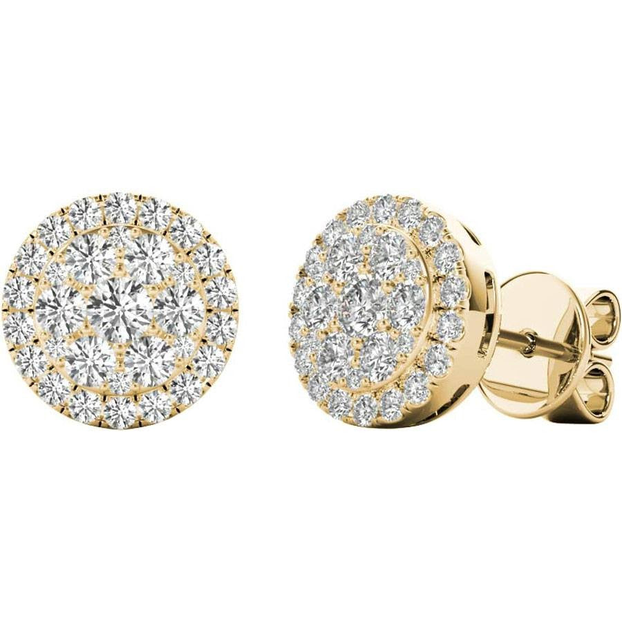 NEW SOLID 18K YELLOW GOLD DIAMOND PAVE HALO WOMEN'S EARRINGS FOR SALE